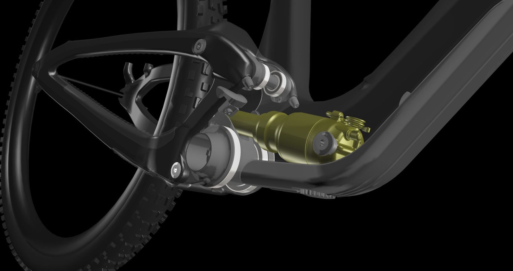Integracija zadnjega amortizerja v okvir dovoljuje zasnovo ultra kompaktnega in kratkega »linka«, ki še dodatno doprinese k nižji teži in togosti okvirja samega. Vzmetenja skupaj z vpetjem okoli gonilne osi omogoča zasnovo znotraj oz. ironično »izven okvirja« klasične zasnove sistema vzmetenja.