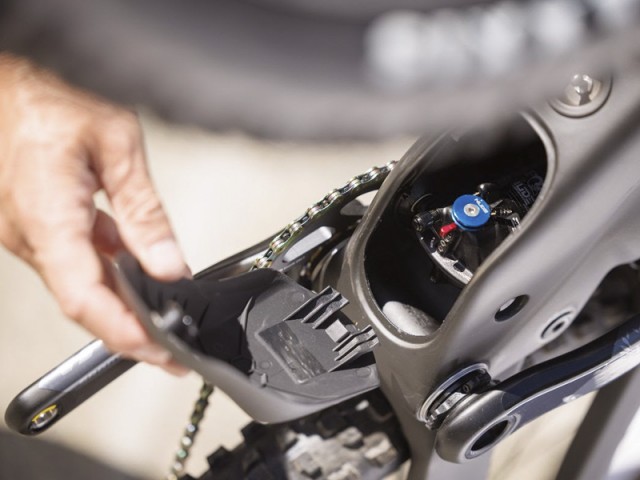 Zadnji blažilec je preprosto dostopen preko spodnje "zaščitne lopute" kjer so na dosegu prstov tudi vse potrebne nastavitve amortizerja samega.